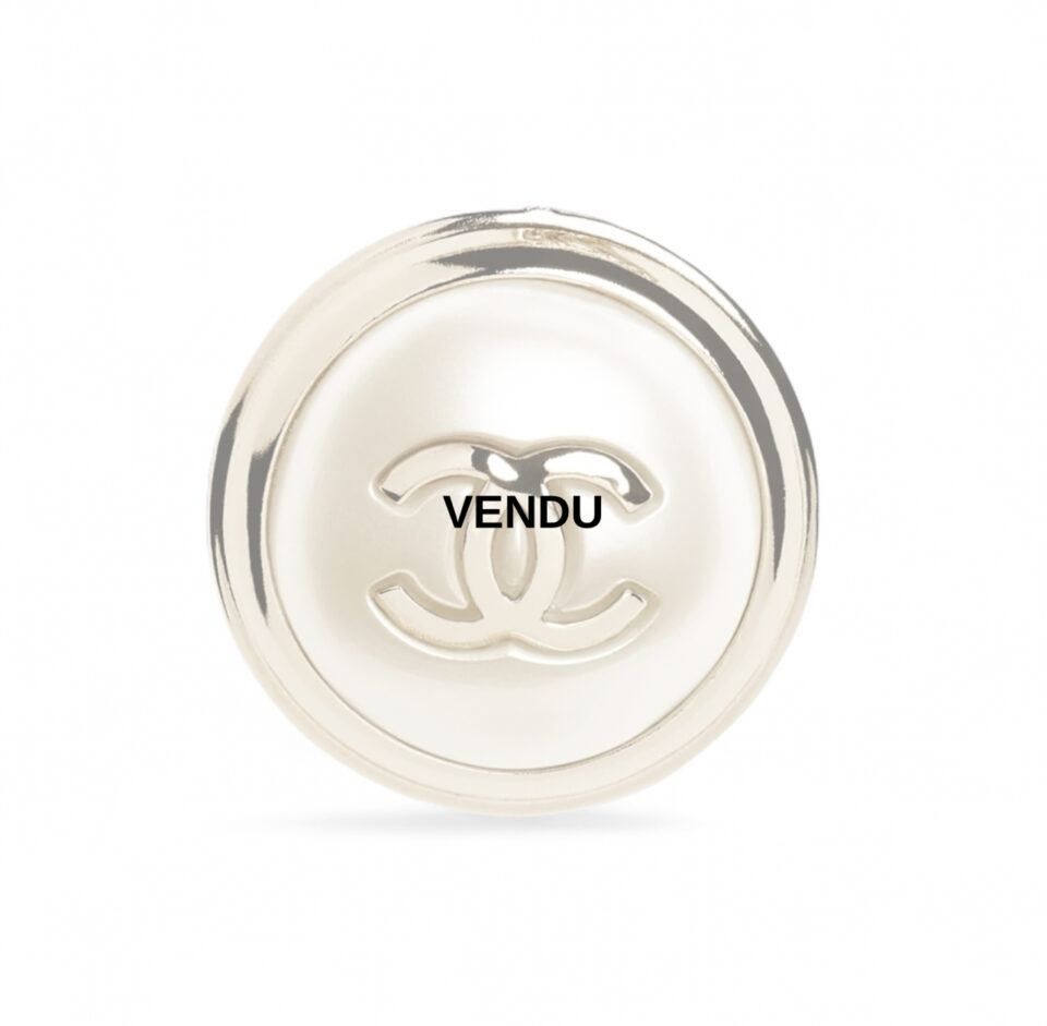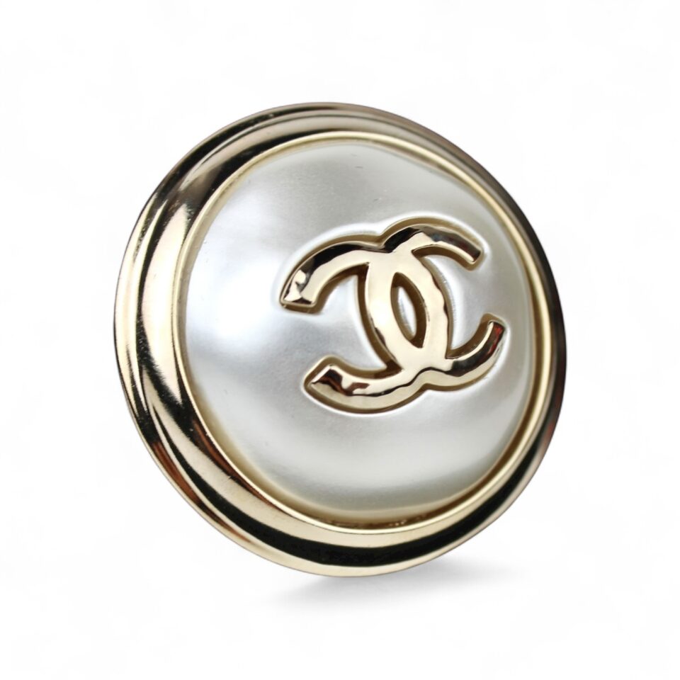 Broche Ronde Médaillon CC Perle D’Imitation Blanc Nacré Métal Doré Clair Chanel