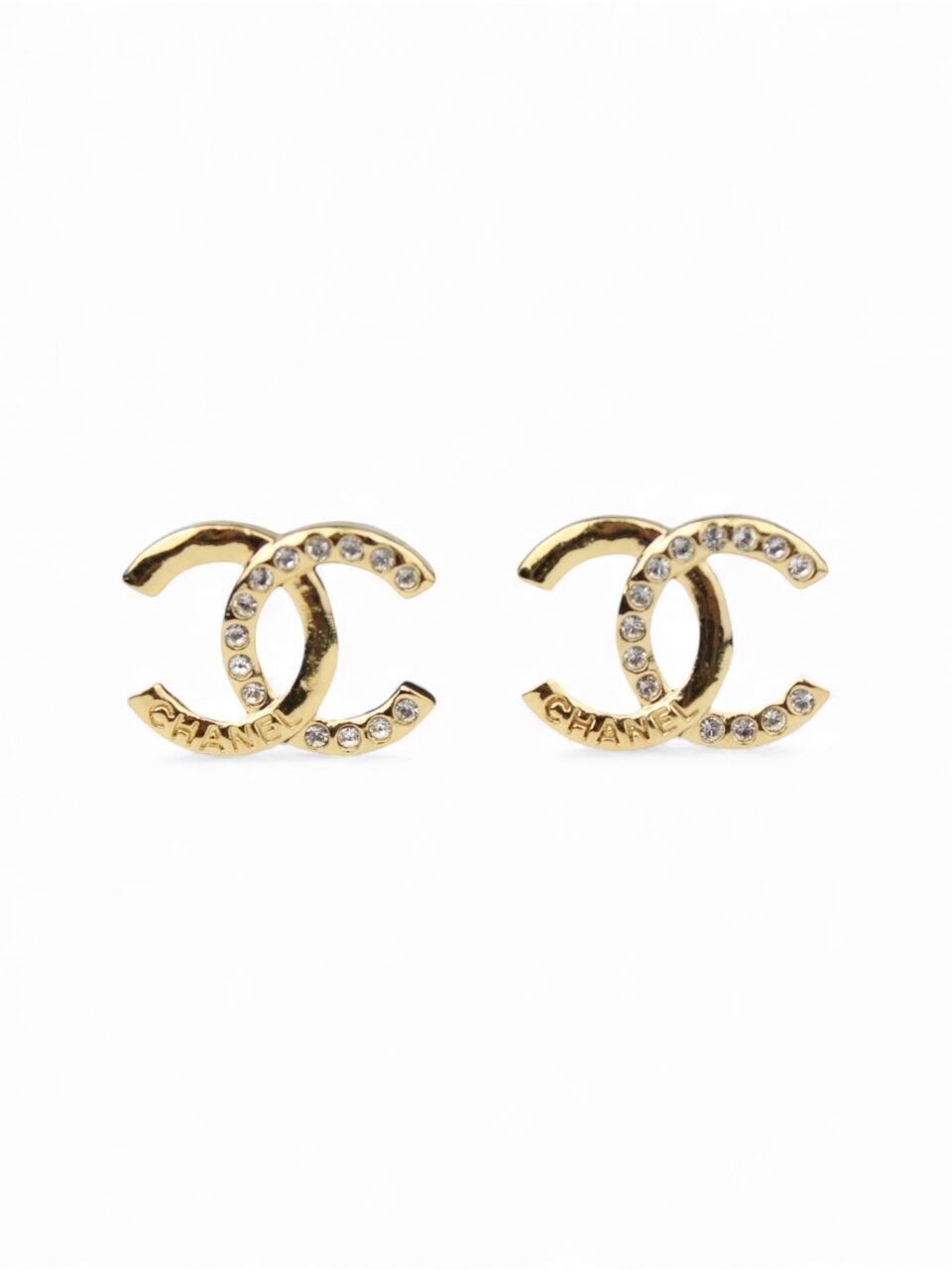 Boucles d’Oreilles CC Chanel Métal Doré Strass « CHANEL »