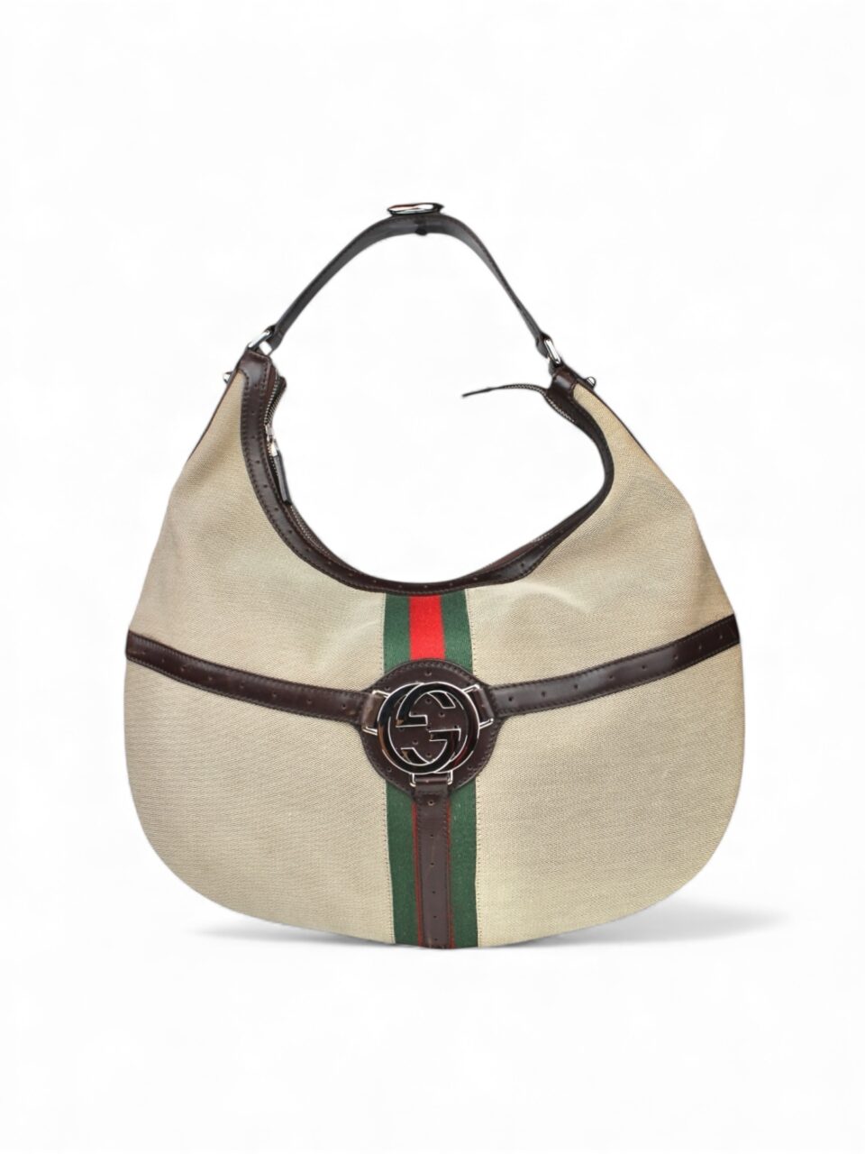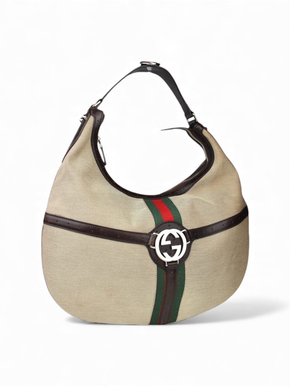 Sac Hobo Toile Beige Bande Web Vert/Rouge Vintage Gucci