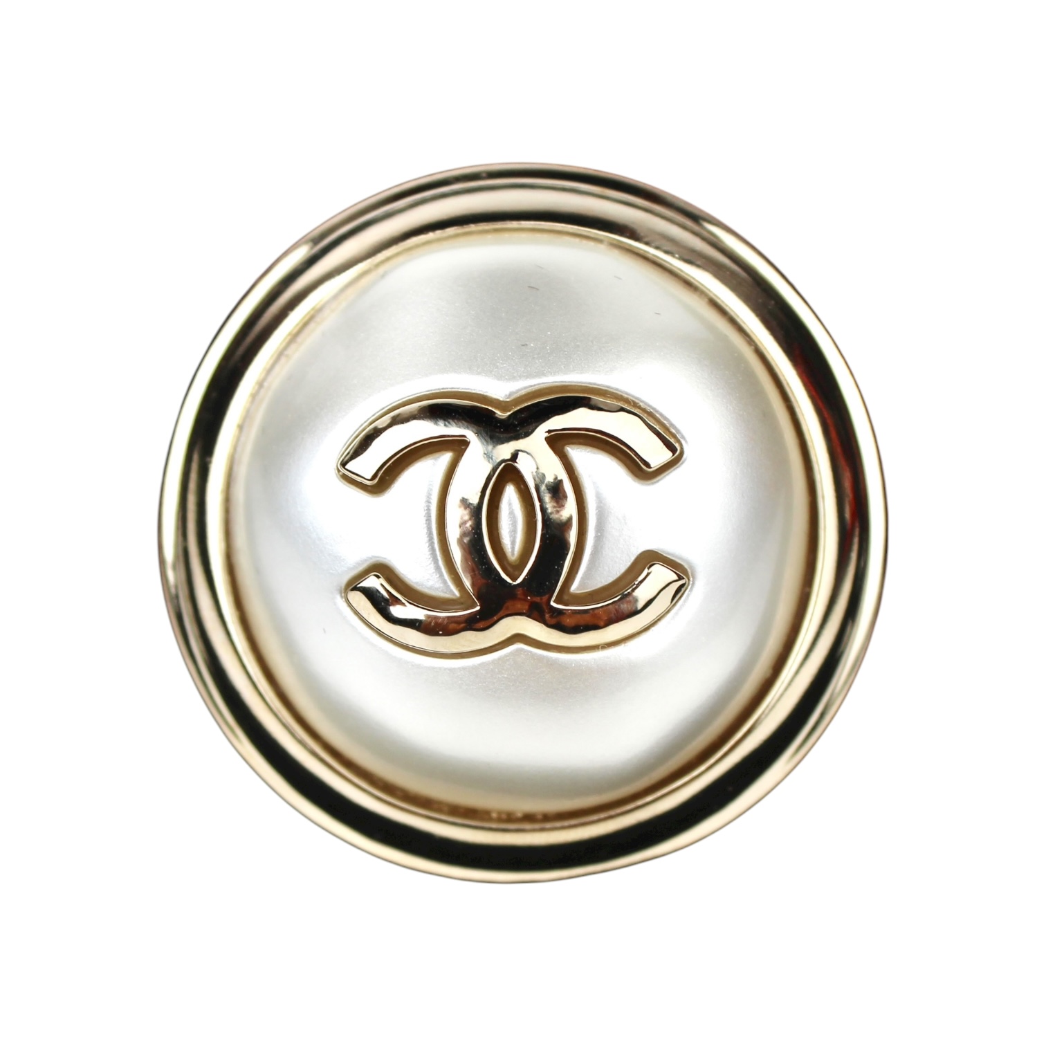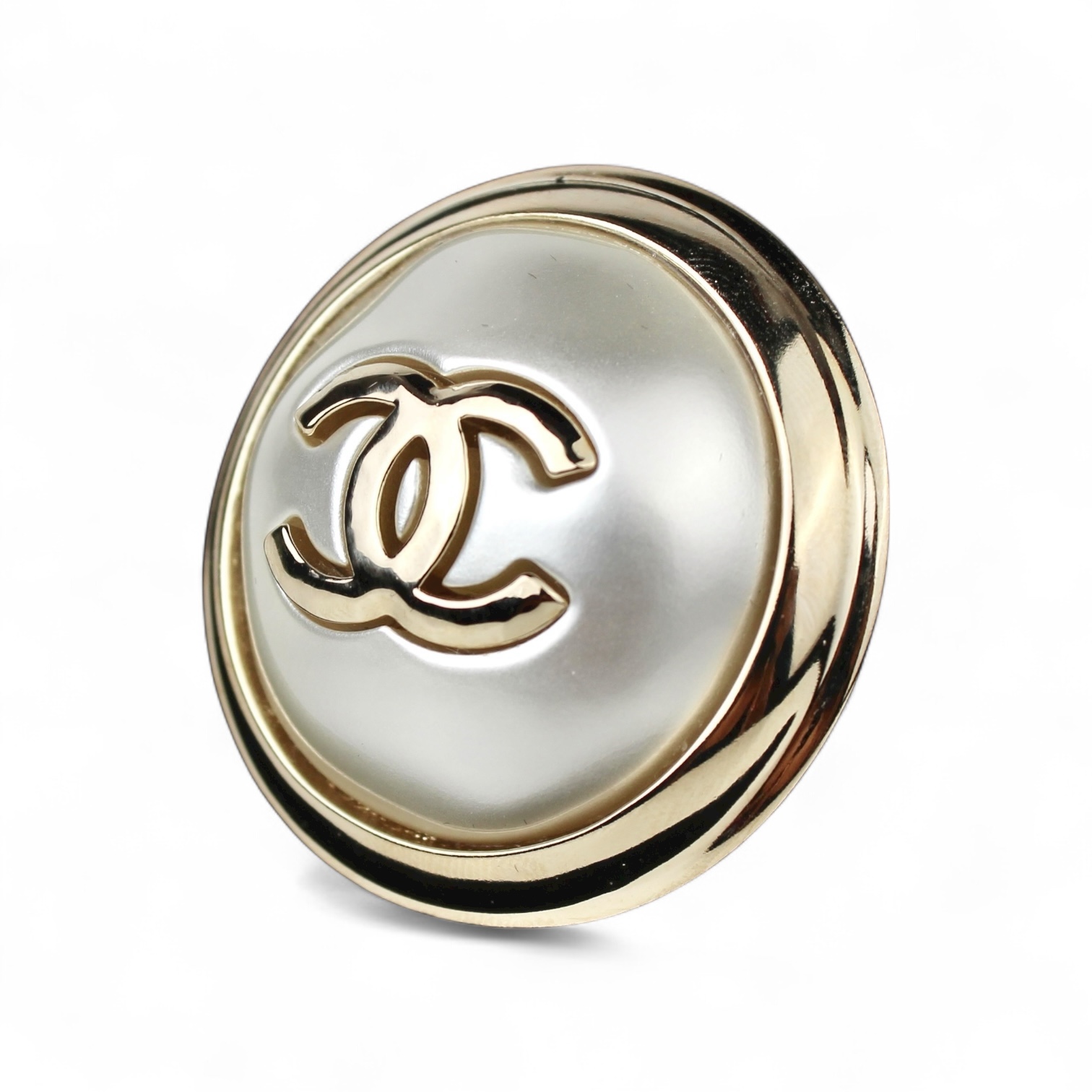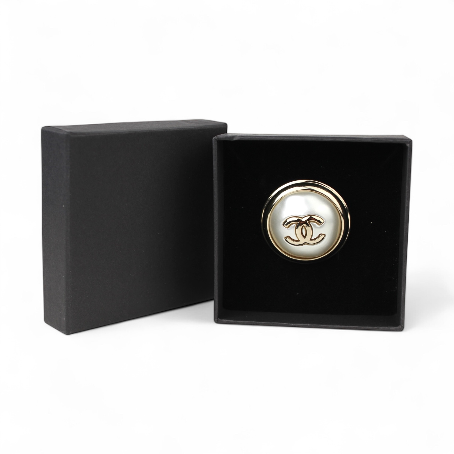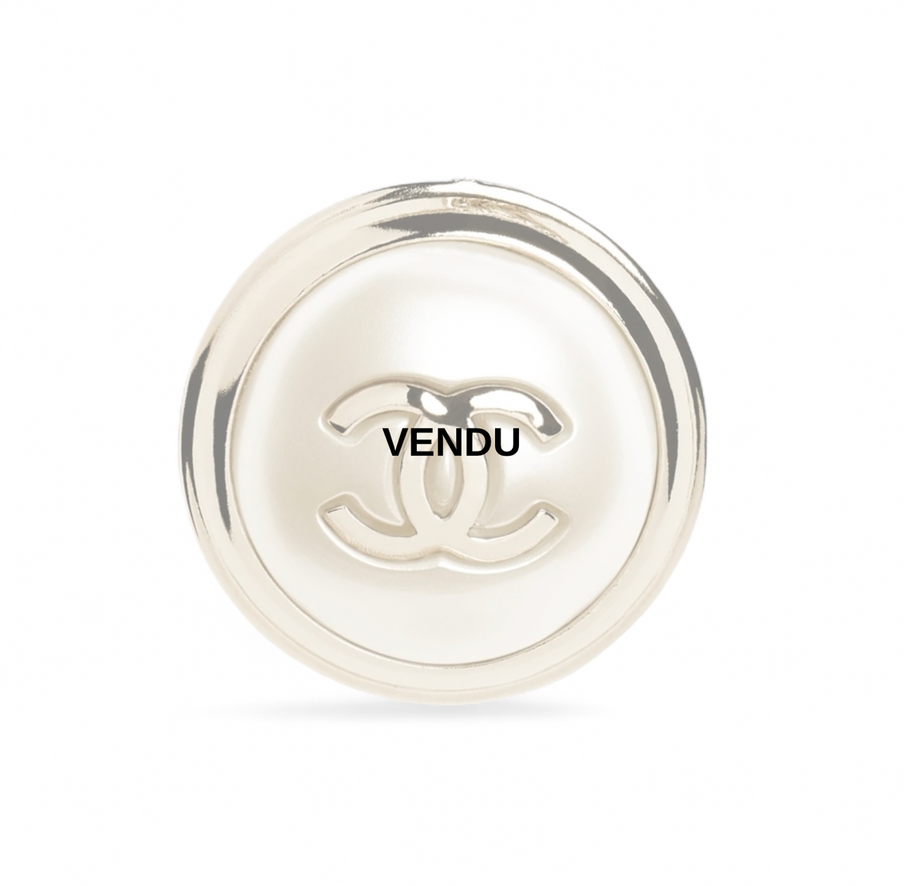 Sublimez vos tenues avec cette broche Chanel emblématique, alliant élégance et sophistication. Conçue dans un esprit intemporel, cette pièce se distingue par son médaillon rond nacré orné du célèbre logo Chanel à double C entrelacés, délicatement doré.Son fini perlé lumineux et son cerclage doré brillant apportent une touche de glamour et de raffinement, idéale pour accessoiriser une veste ou un manteau.