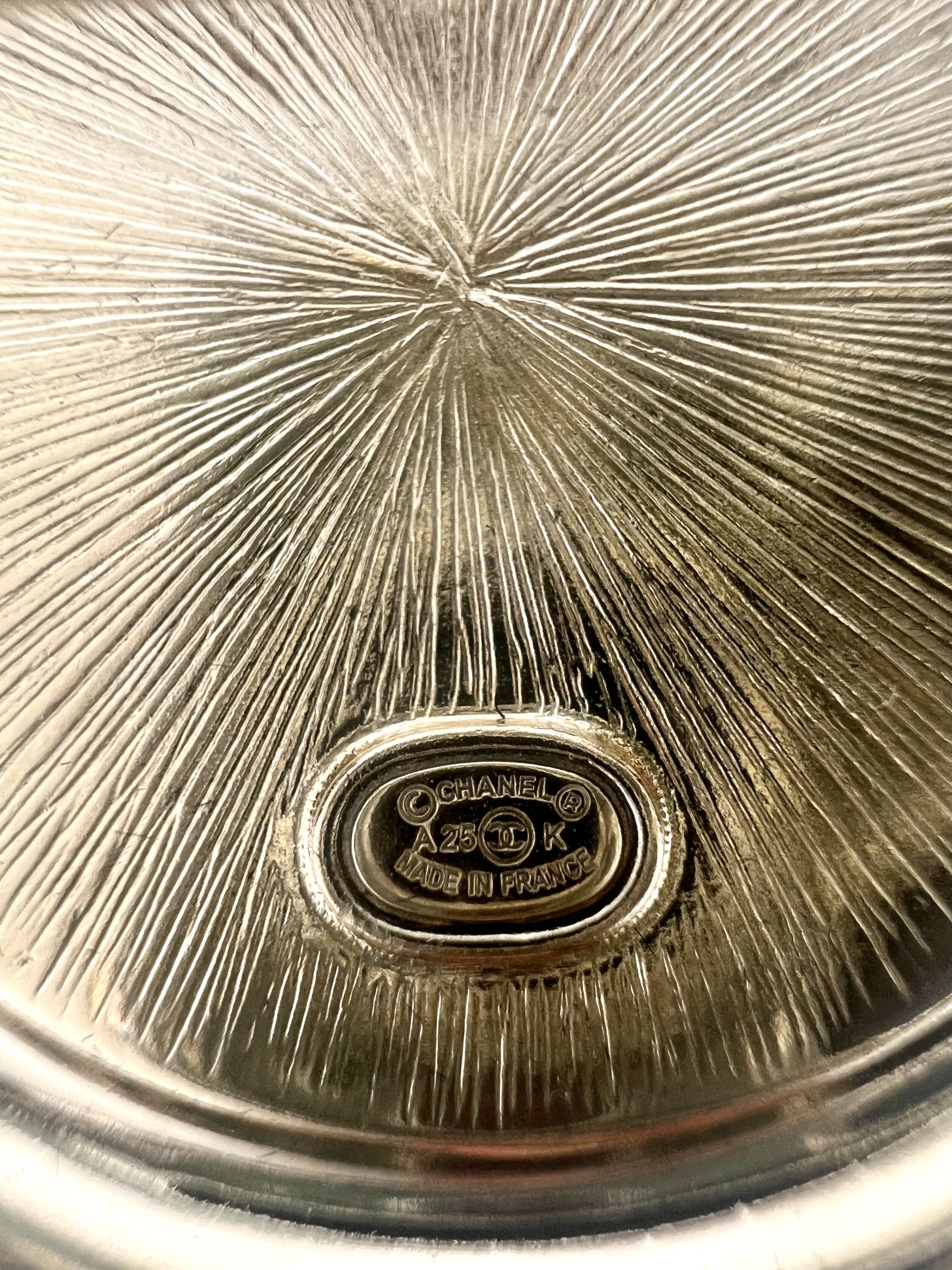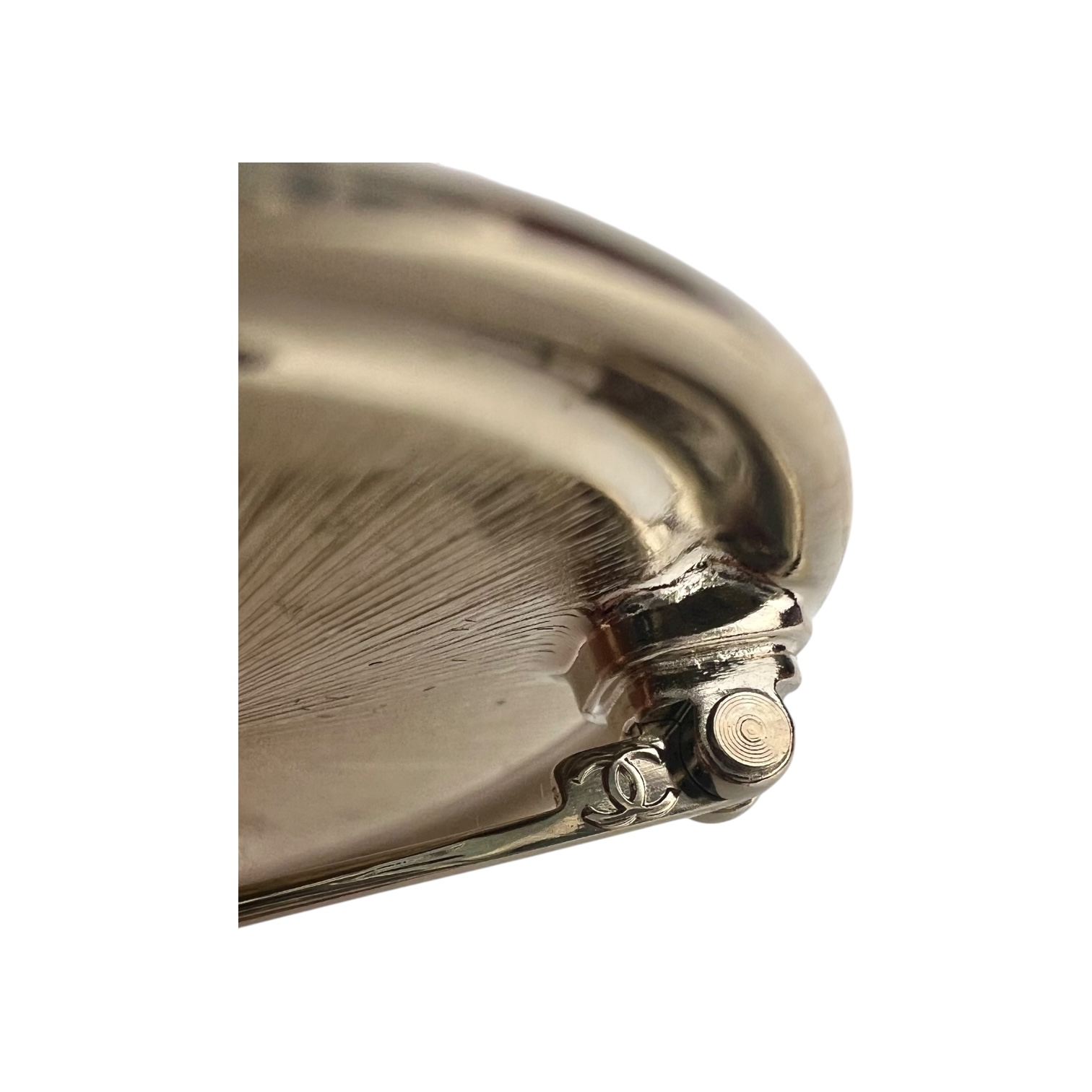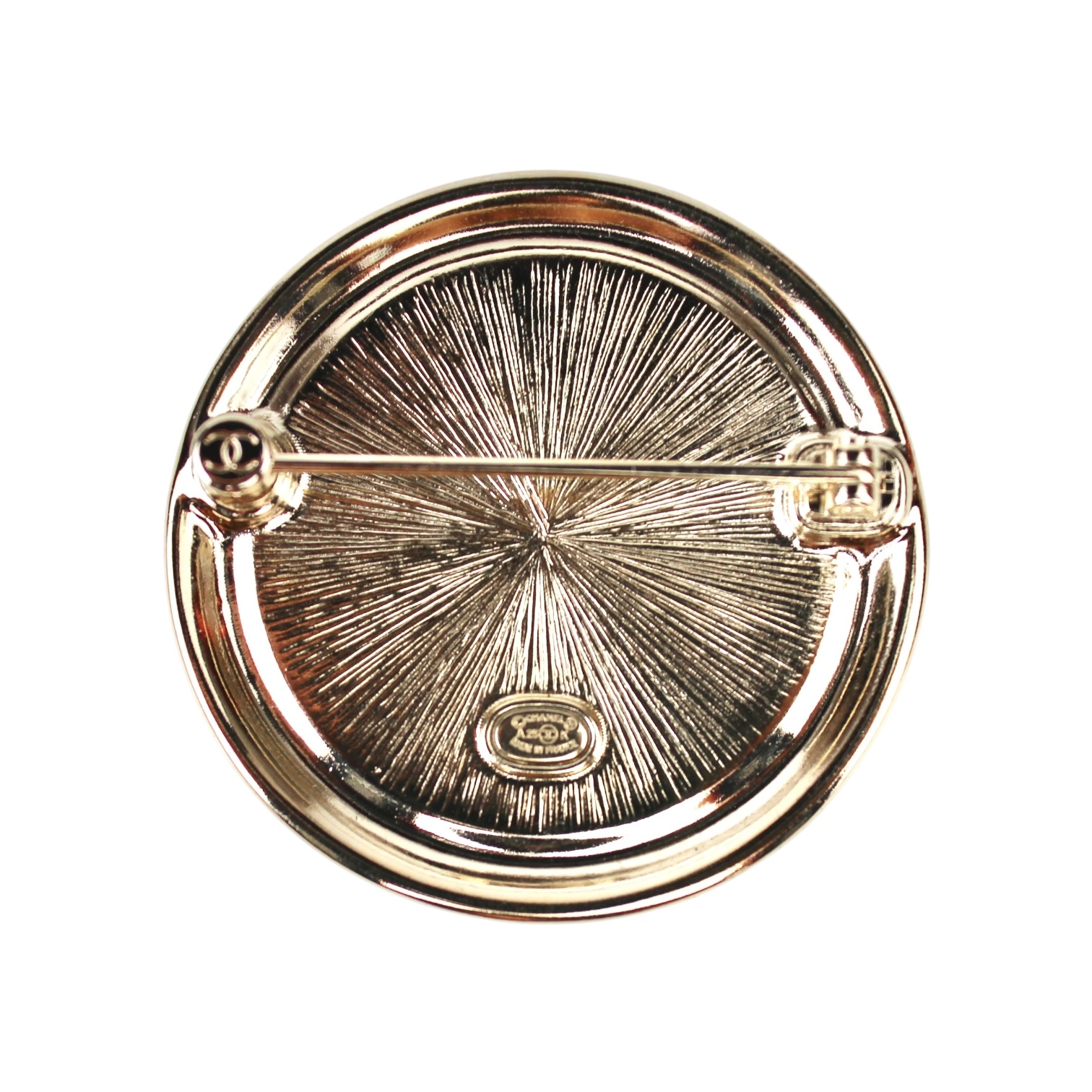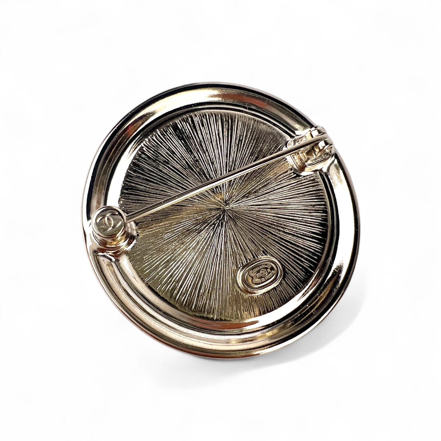 Sublimez vos tenues avec cette broche Chanel emblématique, alliant élégance et sophistication. Conçue dans un esprit intemporel, cette pièce se distingue par son médaillon rond nacré orné du célèbre logo Chanel à double C entrelacés, délicatement doré.Son fini perlé lumineux et son cerclage doré brillant apportent une touche de glamour et de raffinement, idéale pour accessoiriser une veste ou un manteau.
