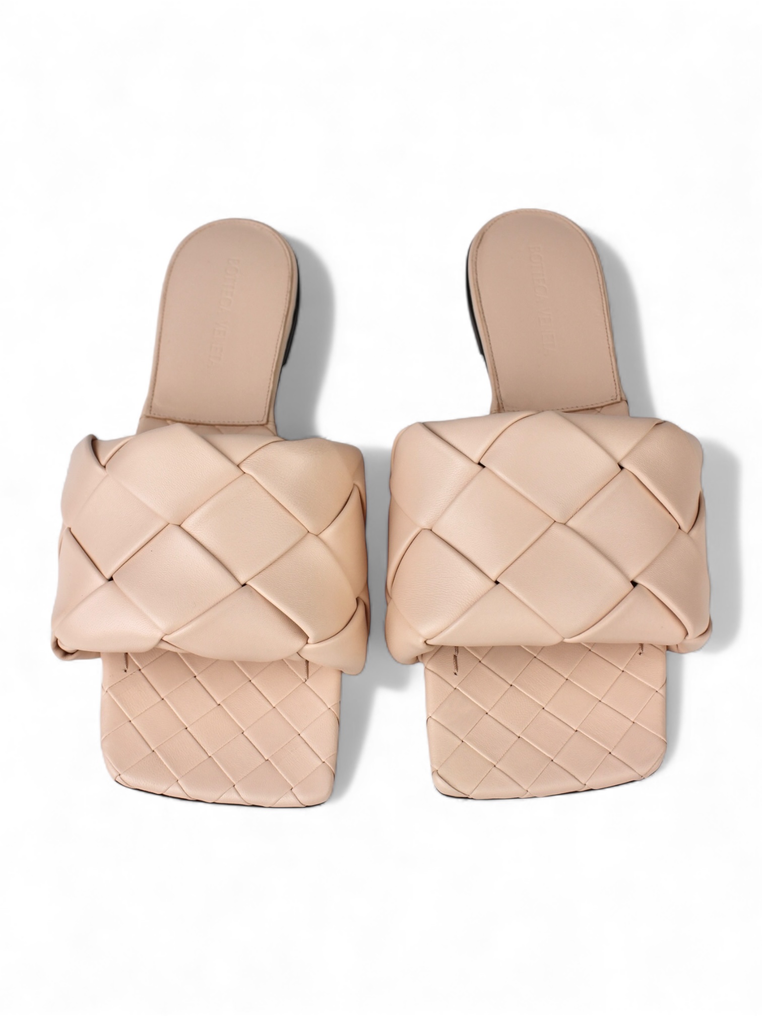 Les mules plates Lido de Bottega Veneta incarnent l’élégance moderne de la maison italienne. Confectionnées dans un cuir d’une qualité exceptionnelle, elles se distinguent par leur tressage iconique Intrecciato. Leur design épuré et sophistiqué en fait une pièce statement, parfaite pour rehausser une tenue avec style et caractère.