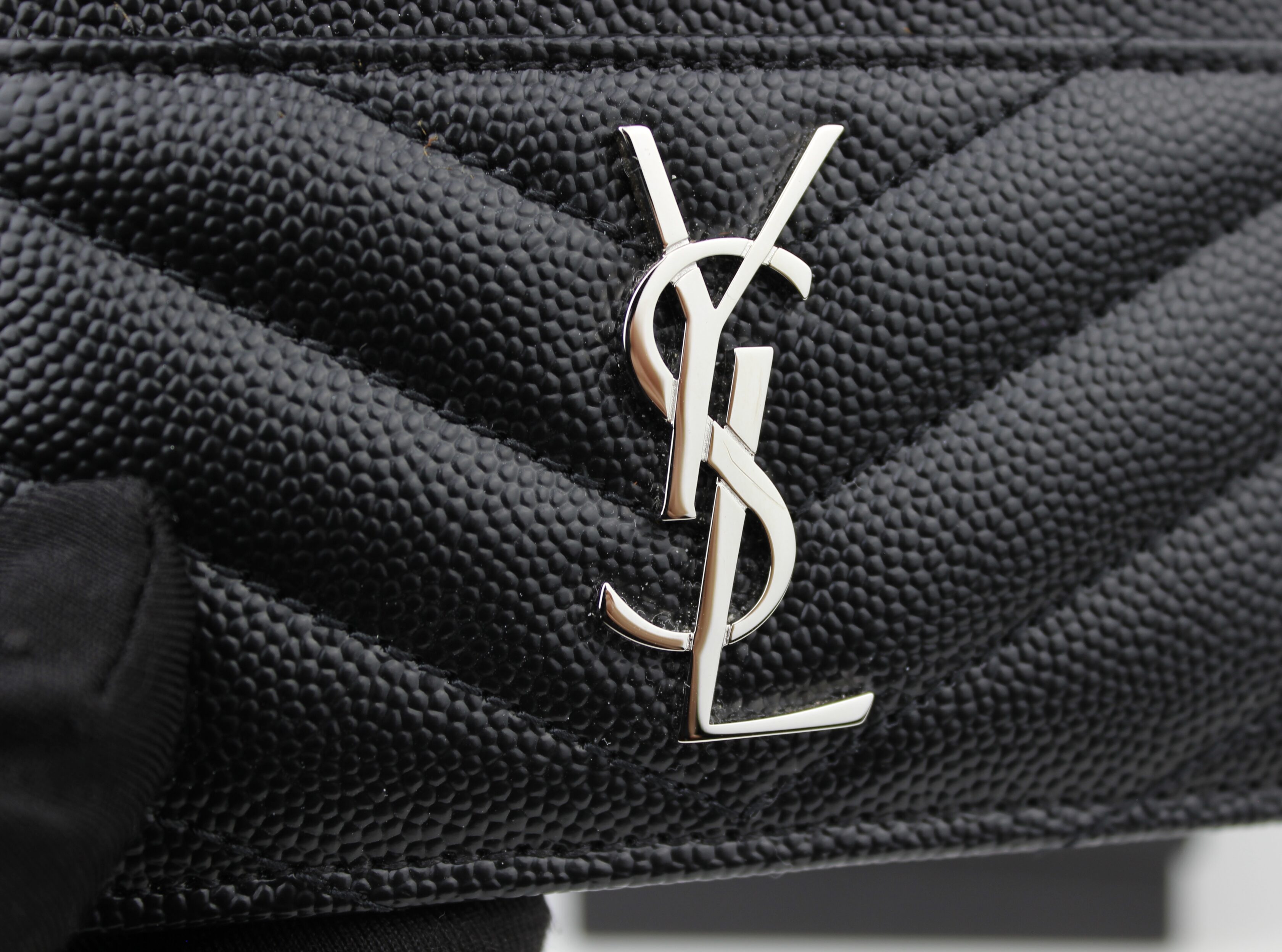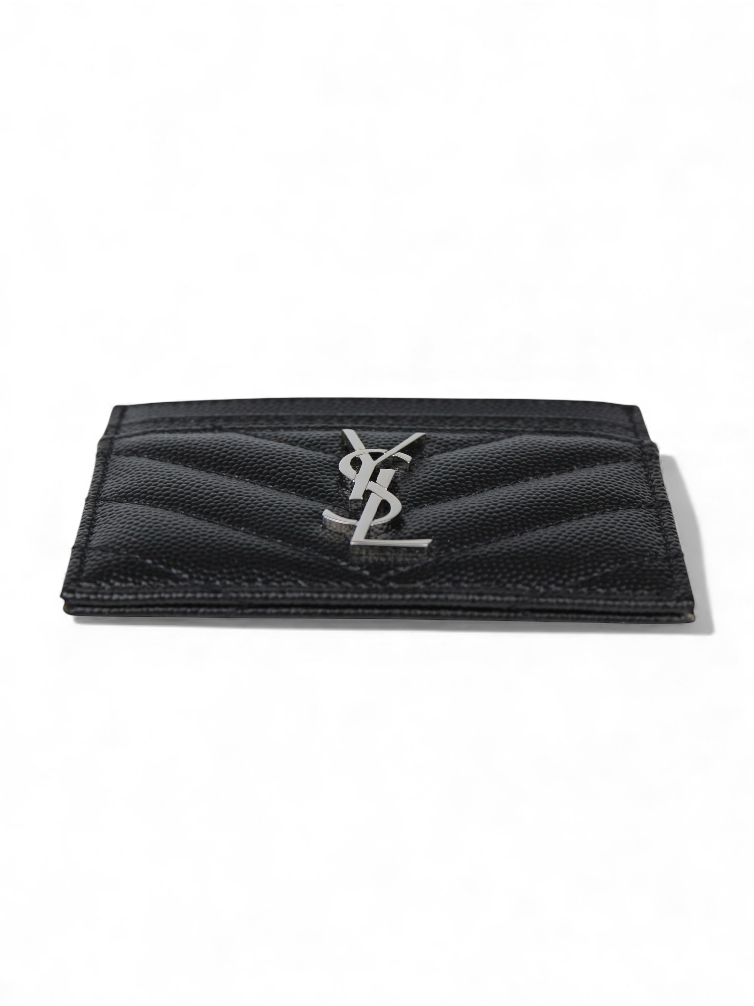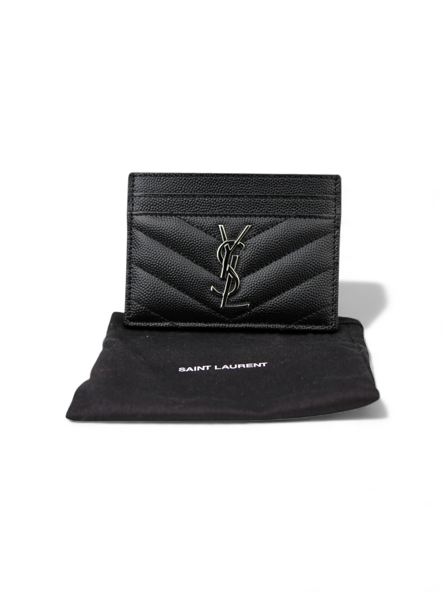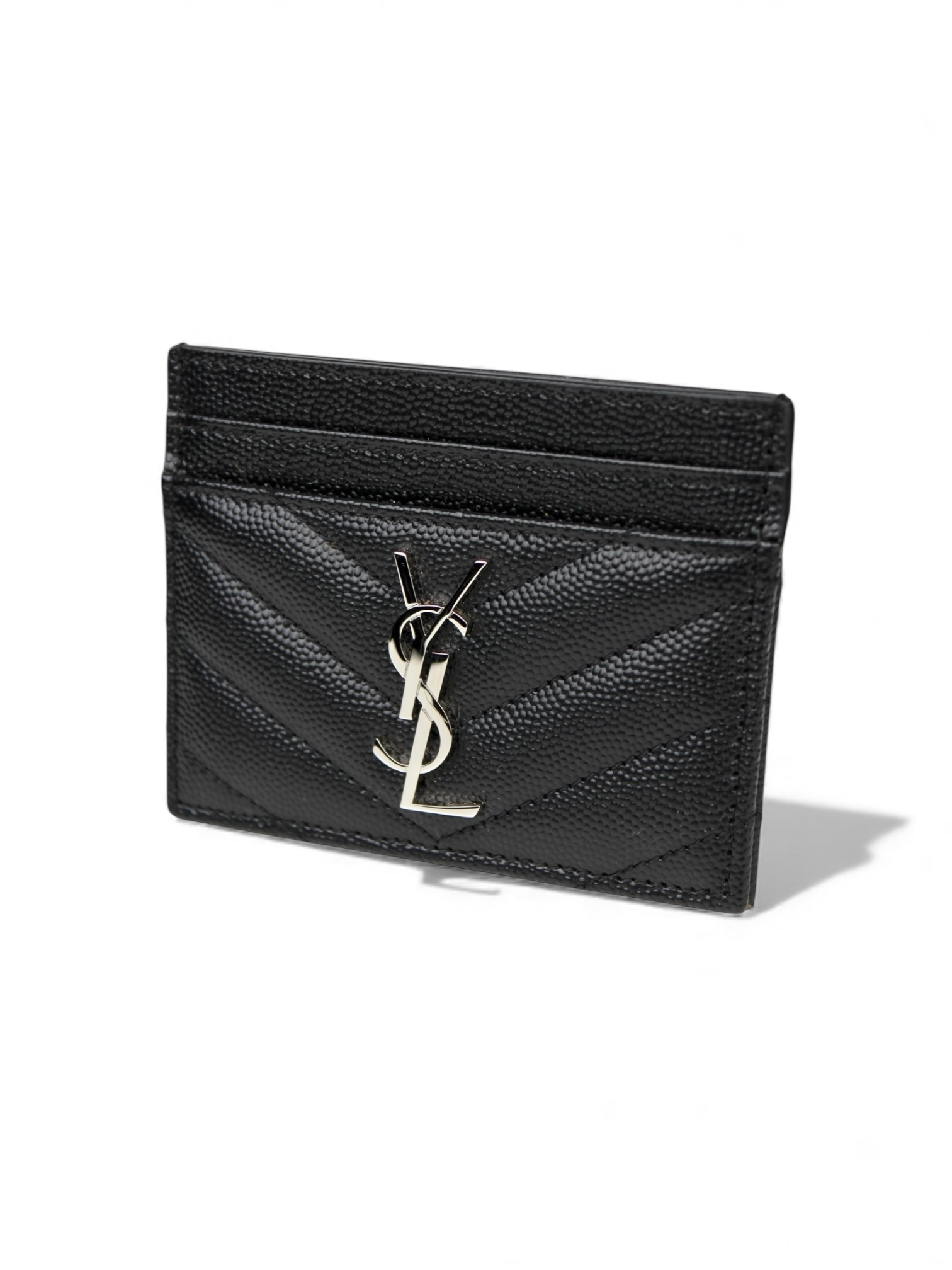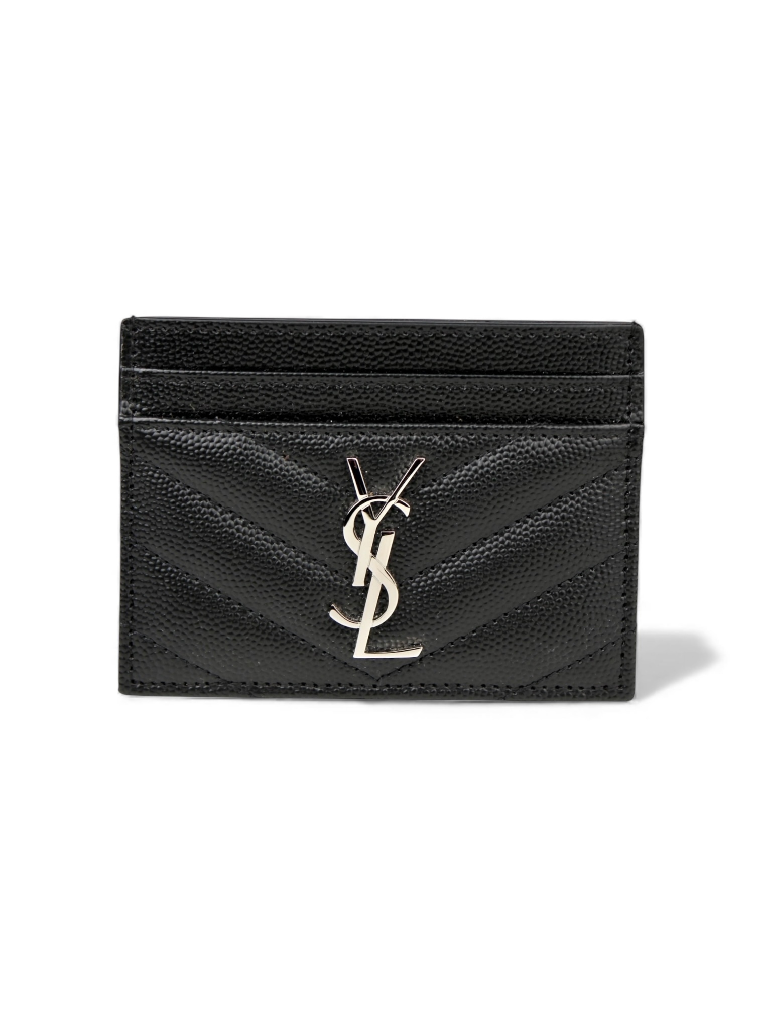 Porte-carte Cassandre Cuir Grain De Poudre Noir, Argenté Saint Laurent