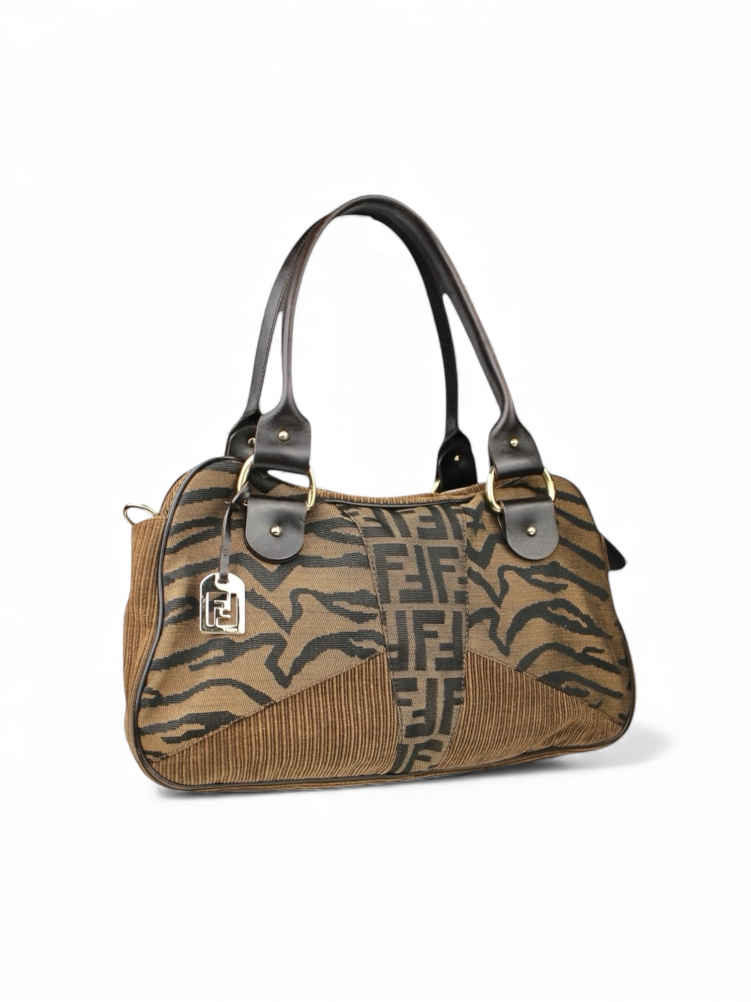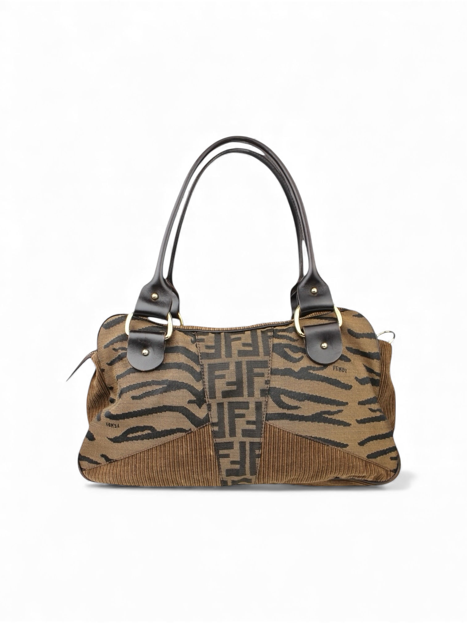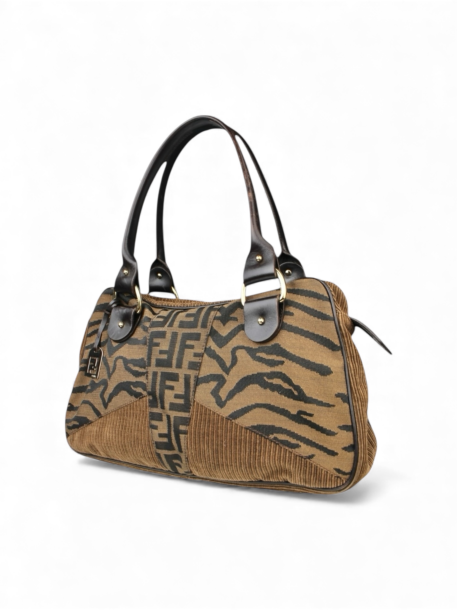 Sac Épaule Zucca Zebra Print Toile FF, Velours Fendi Vintage