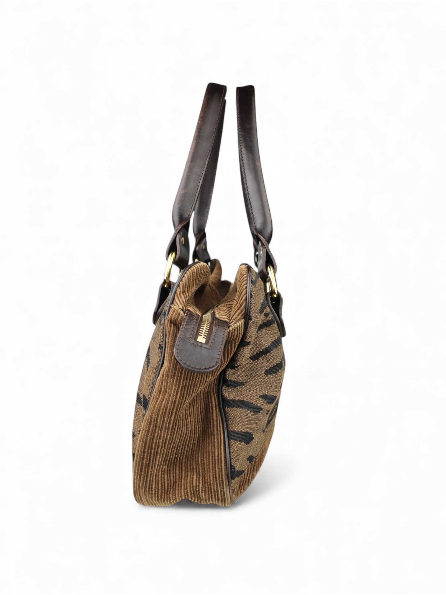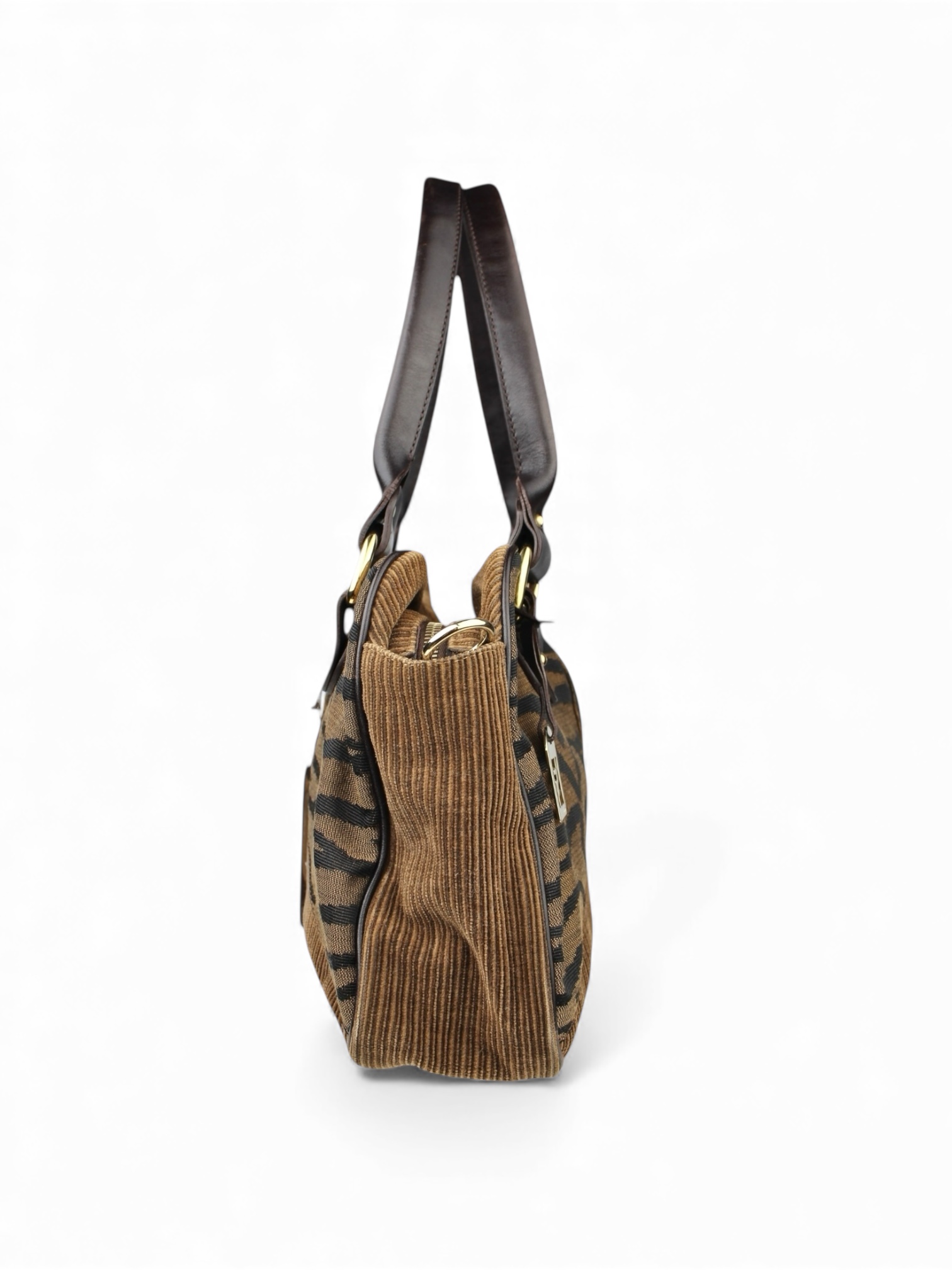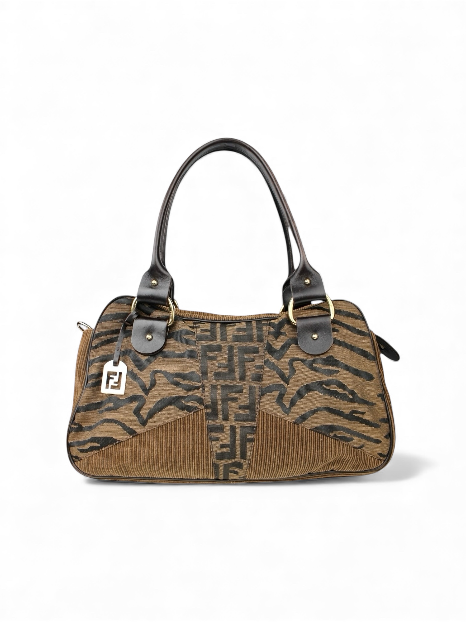 Sac Épaule Zucca Zebra Print Toile FF, Velours Fendi Vintage